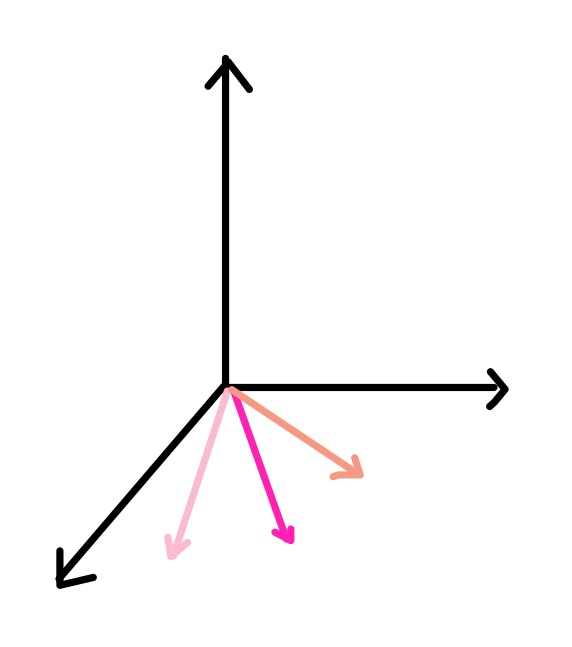 아무리 x,y,z에 대한 조합을 잘 설계한다 하더라도 3개의 벡터가 모두 z 성분이 0 (즉 xy 성분만 있음) 이라면 도저히 z성분을 표현하지 못할 것이다.