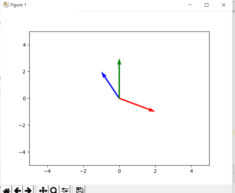 plt.quiver(*origin, A[:,0], A[:,1], color=['r','b','g'], angles ='xy', scale_units='xy', scale=1)